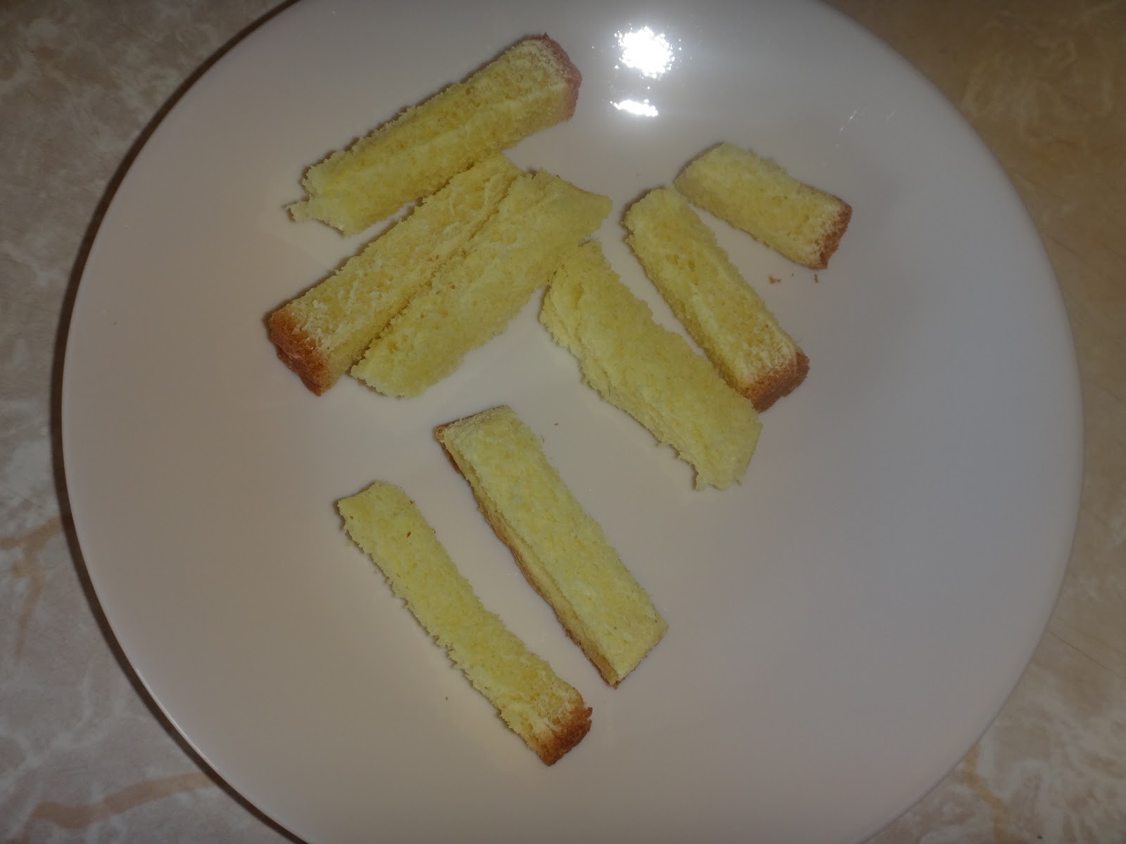 Step 1: Cut the bread slices into medium finger shaped chops as shown.you need not cut the edges of the slices