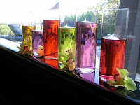 These are different shaped containers filled with coloured water.Depending on the colours used in the party you can select the colour of the water.