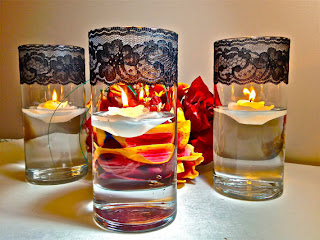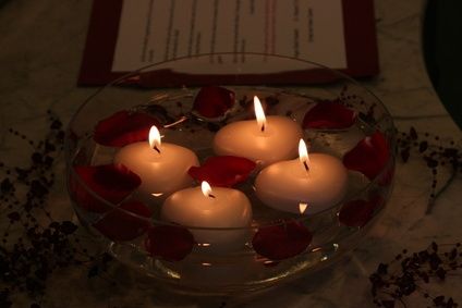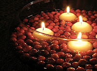 Take a glass bowl with water.Decorate it with rose petals and floating candles. This can be used as a centerpiece.