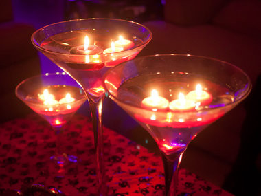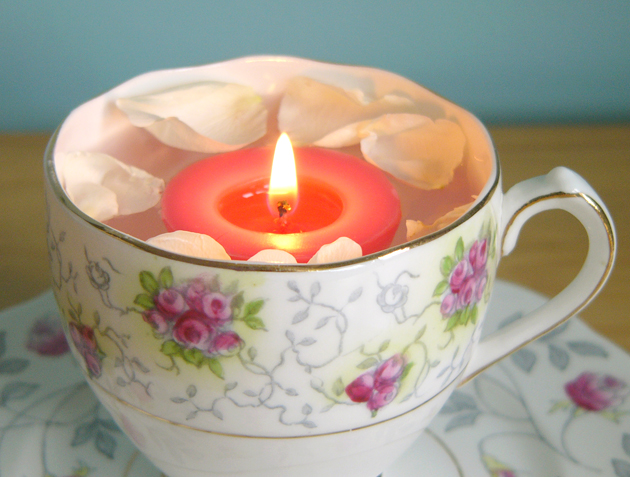 Take a glass bowl with water.Decorate it with rose petals and floating candles. This can be used as a centerpiece.